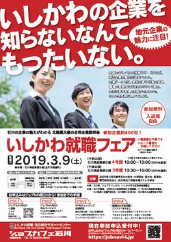 をテーマに、石川県内の様々な分野の企業が一同に会する合同企業説明会。