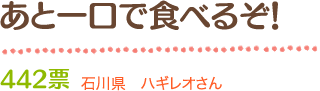 この表情!余裕の食べっぷり! おもわず笑みがこぼれます。 インパクト効果で票があつまり、2位の座に!!